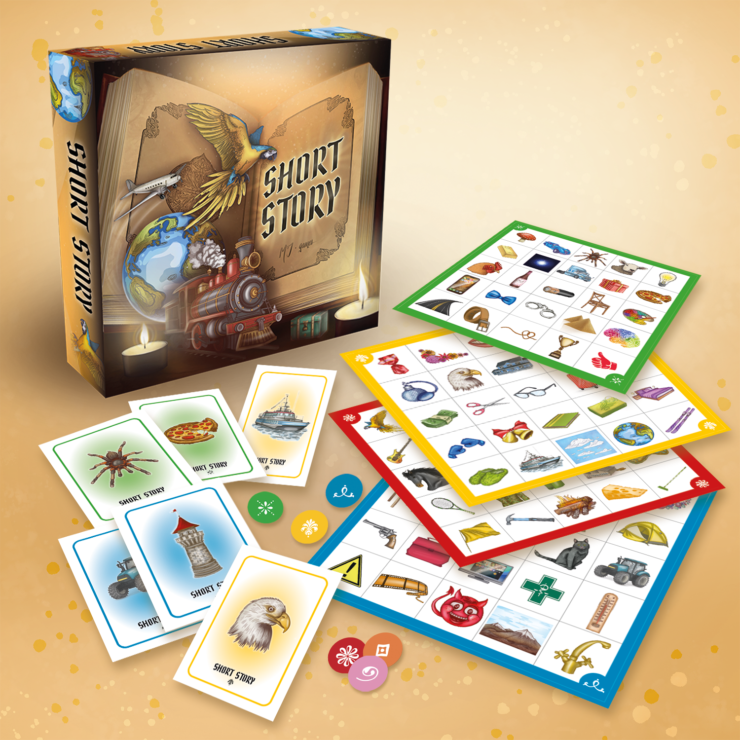 Short Story est le jeu d’ambiance parfait pour animer vos soirées en famille ou entre amis ! Chaque joueur devient tour à tour narrateur, et l’objectif est simple : retrouver le plus vite possible les mots-clés cachés dans son histoire.